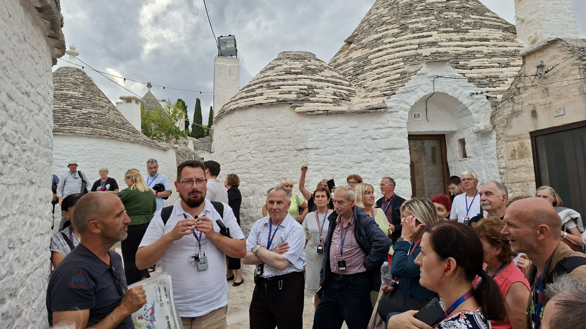 W Alberobello poczuliśmy się jak w baśni — charakterystyczne domki trulli tworzyły niepowtarzalny klimat, który trudno opisać słowami. Te białe, cylindryczne budowle z kamiennymi, stożkowymi dachami mają fascynującą historię. Ich geneza sięga XVII wieku, kiedy to — jak opowiadała przewodniczka pani Ania z Małopolski, która sześć lat temu wyjechała do Italii, gdzie spotkała miłość swego życia i już pozostała — mieszkańcy regionu Apulii budowali domy bez zaprawy murarskiej, by móc je łatwo rozebrać w razie inspekcji podatkowej. Był to sprytny sposób na obejście królewskich opłat za trwałe budowle. Z czasem trulli stały się symbolem lokalnej architektury, a ich forma przetrwała jako świadectwo pomysłowości i stylu życia dawnych mieszkańców.